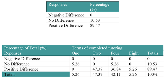 Two responses indicated that the length of tutoring was related to them having no long-term differences; “Not much difference now but really because of shortness of time spent”. One of these students had only completed one term of tutoring. MFAL acknowledges that the longer a student receives tutoring the more benefits they will receive.